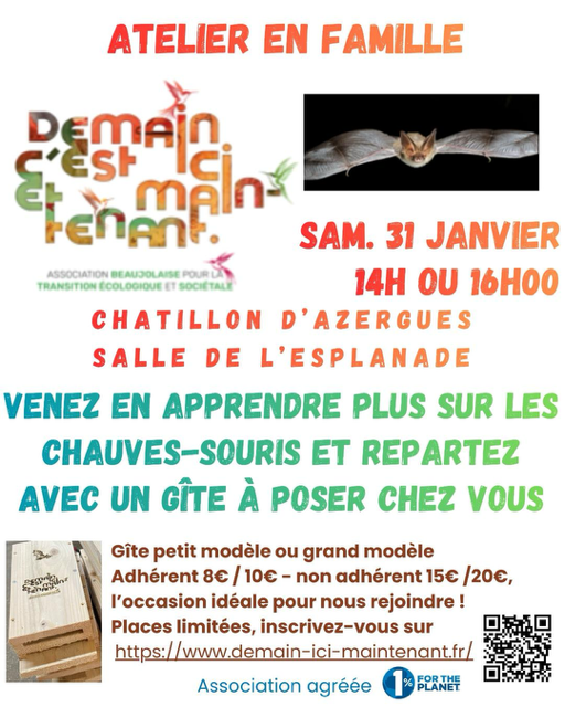 🦇Samedi 31 janvier 2026, atelier familial de gites Ă chauve souris Ă Châtillon d’Azergues